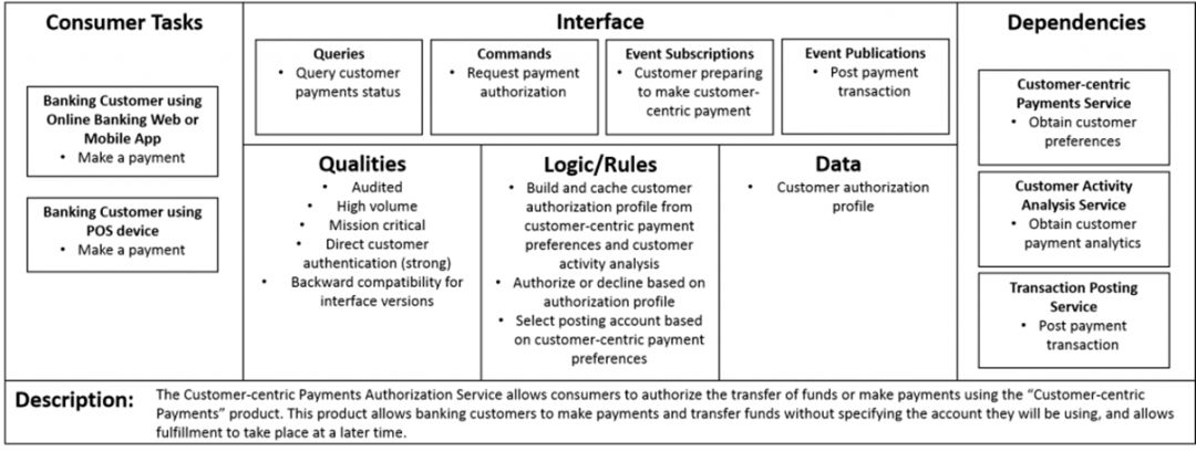 接下来是以客户为中心的支付授权服务的画布: