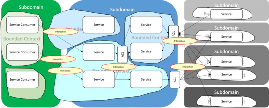 其次,可以在有界上下文之间建立防腐层(ACL),以提供松散的语义耦合。最后,虽然这是一个相当复杂的图片,但没有实现细节。换句话说,这种模式可以使用许多不同的技术来实现,包括语言,主机环境和网络协议。